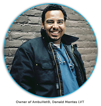 Don Montes, a Licensed Veterinary Technician and owner of AmbuVet Pet Ambulance, assists in various animal emergencies every day. Animals hit by cars, building collapses, fires and other medical emergencies rely on Don's trustworthy service to save pet lives. He expanded AmbuVet to